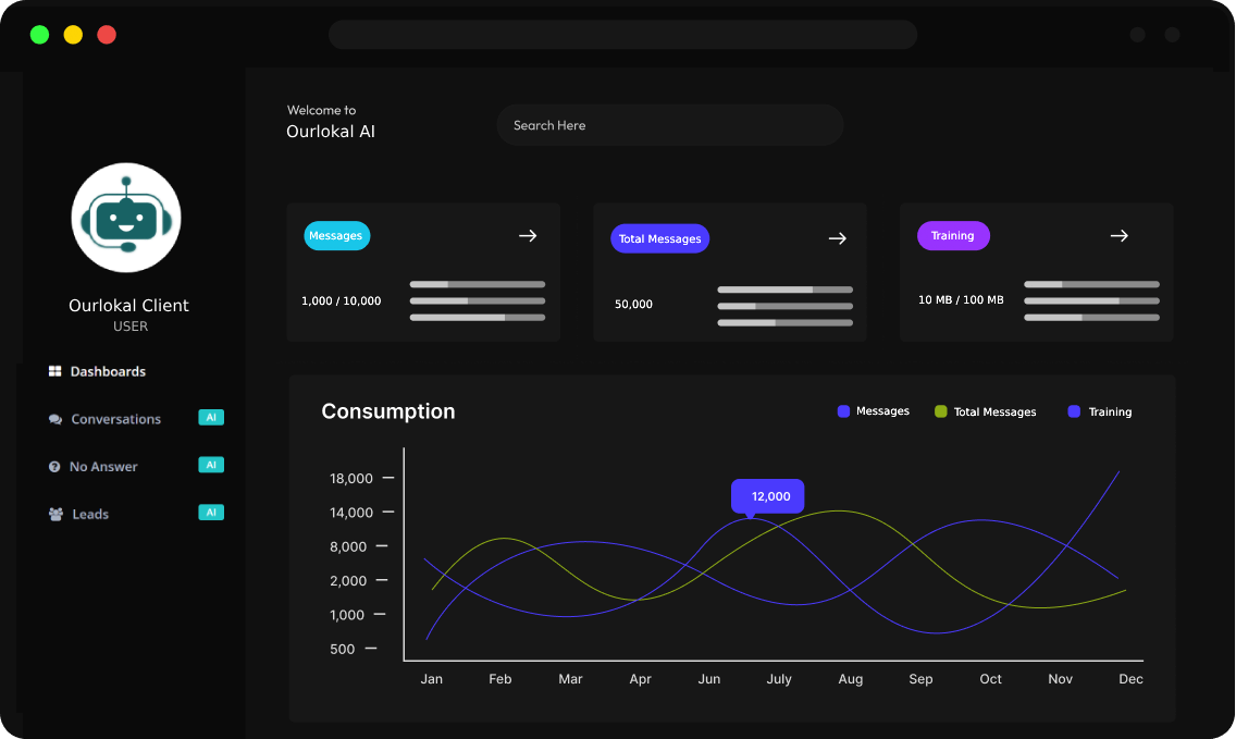 Built to handle high volumes, our chatbots learn from every interaction, becoming smarter and more effective over time—no matter the scale.